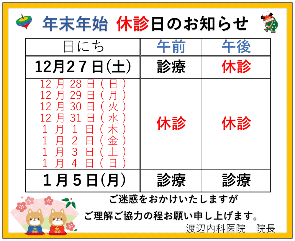 年末年始 休診日のお知らせ